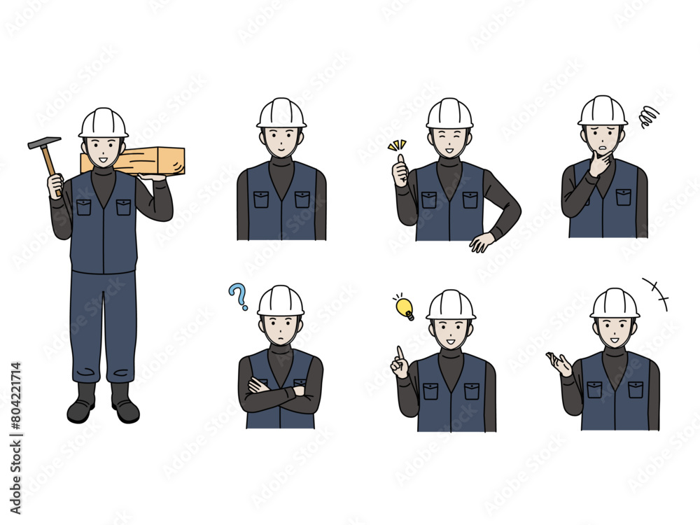 Bild auf Leinwand 大工、土方の男性のイラストセット