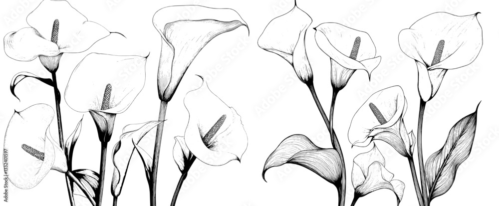 Foto A hand-drawn doodle style illustration featuring a set of calla lilies