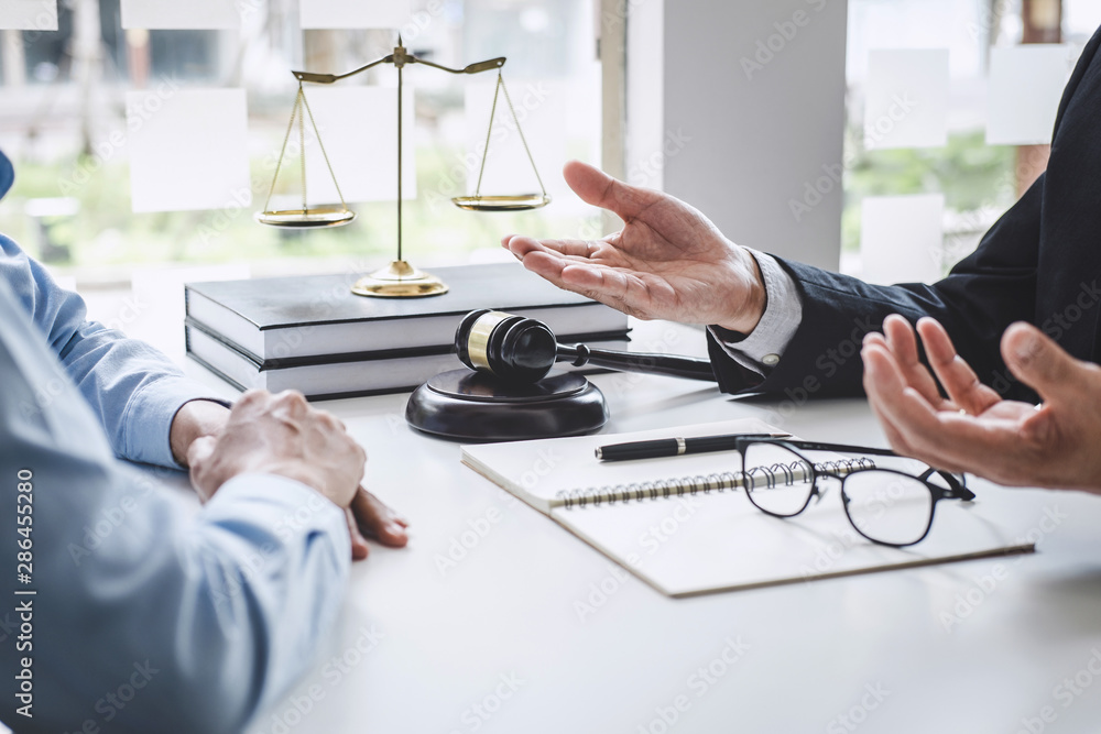 Foto Consultation and conference of Male lawyers and professional businesswoman working and discussion having at law firm in office