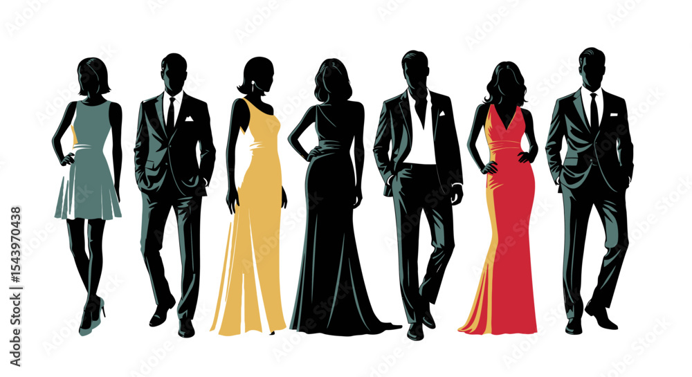 Foto Stylish Silhouettes of Men and Women in Formal Evening Wear