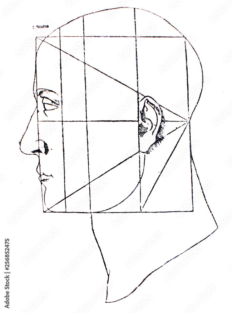 Foto Proportions of head by Leonardo Da Vinci in a vintage book Leonard de Vinci, Eug
