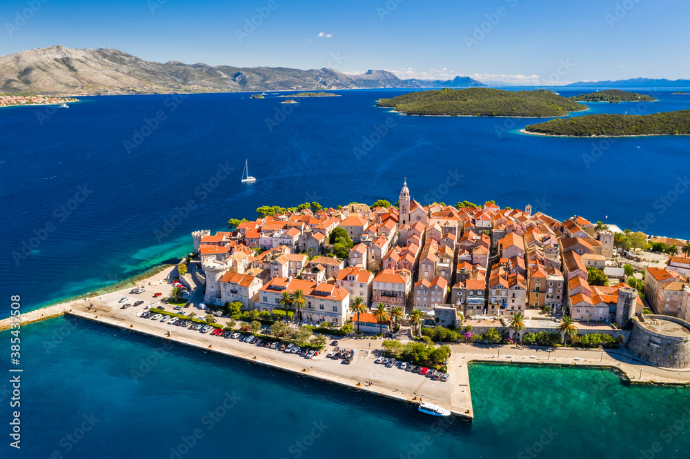 Foto Aerial view of Korcula old town on Korcula island, Croatia.