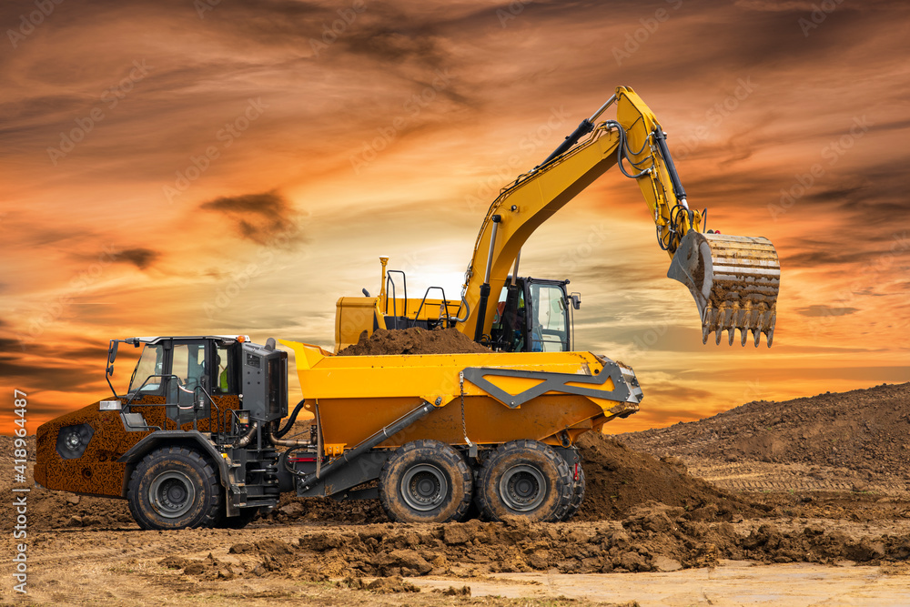 Foto excavator at work on construction site