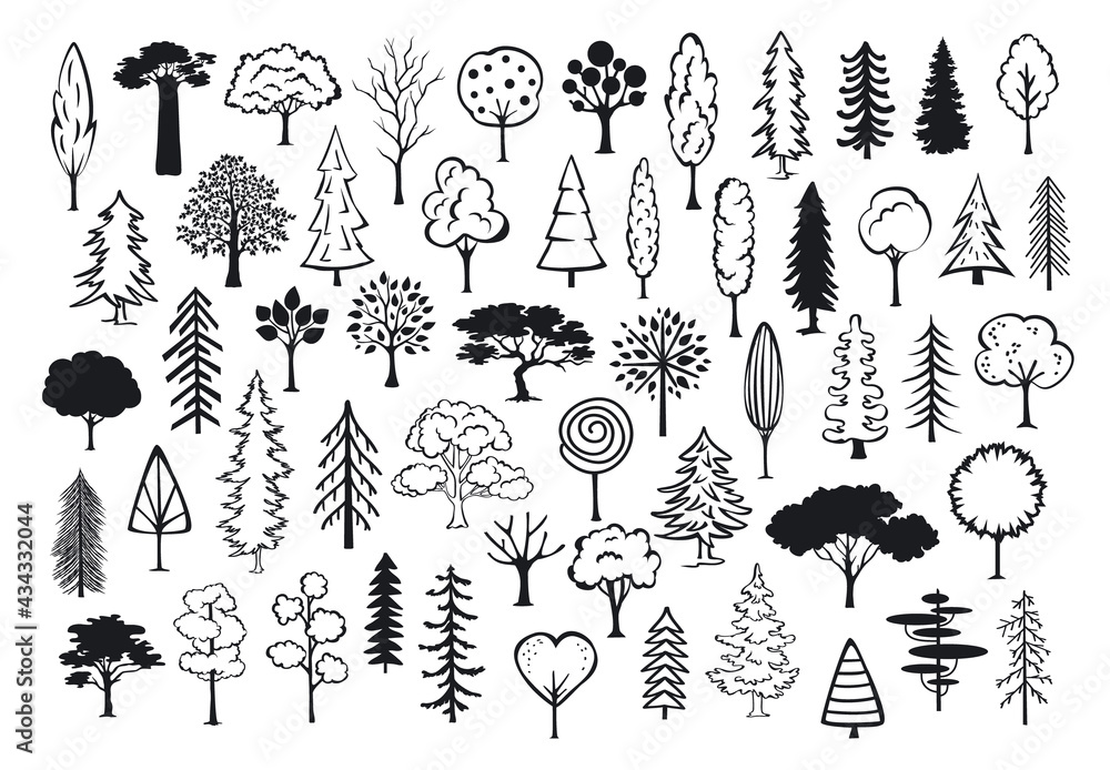 Foto doodle park forest conifer abstract silhouettes outlined trees in black color co