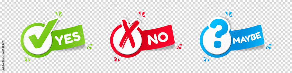 Foto Decision Button Sticker Set Yes, No And Maybe - Vector Illustrations Isolated On