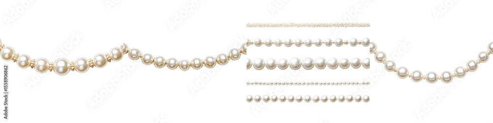 Foto Elegant Pearl Strand Collection: Different Sizes and Arrangements on White