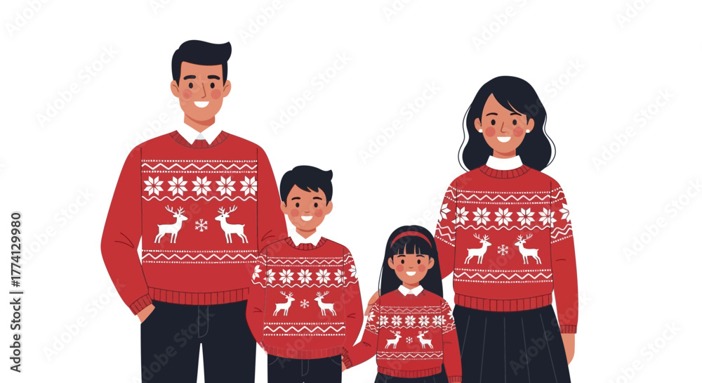 Foto Family portrait in matching Christmas sweaters, celebrating festive season and t