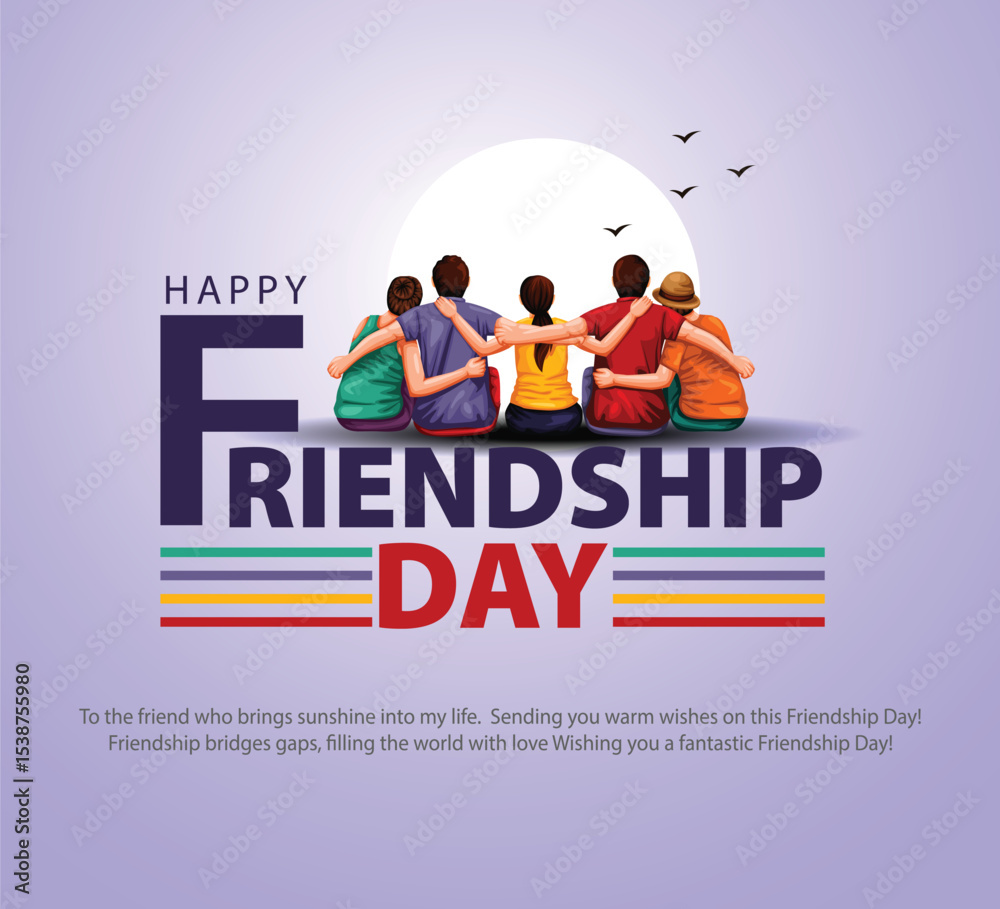 Fototapete Happy international friendship day greeting card, back view of friends group