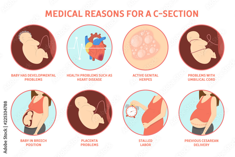 Fototapete Medical reasons for cesarean delivery or c-section.