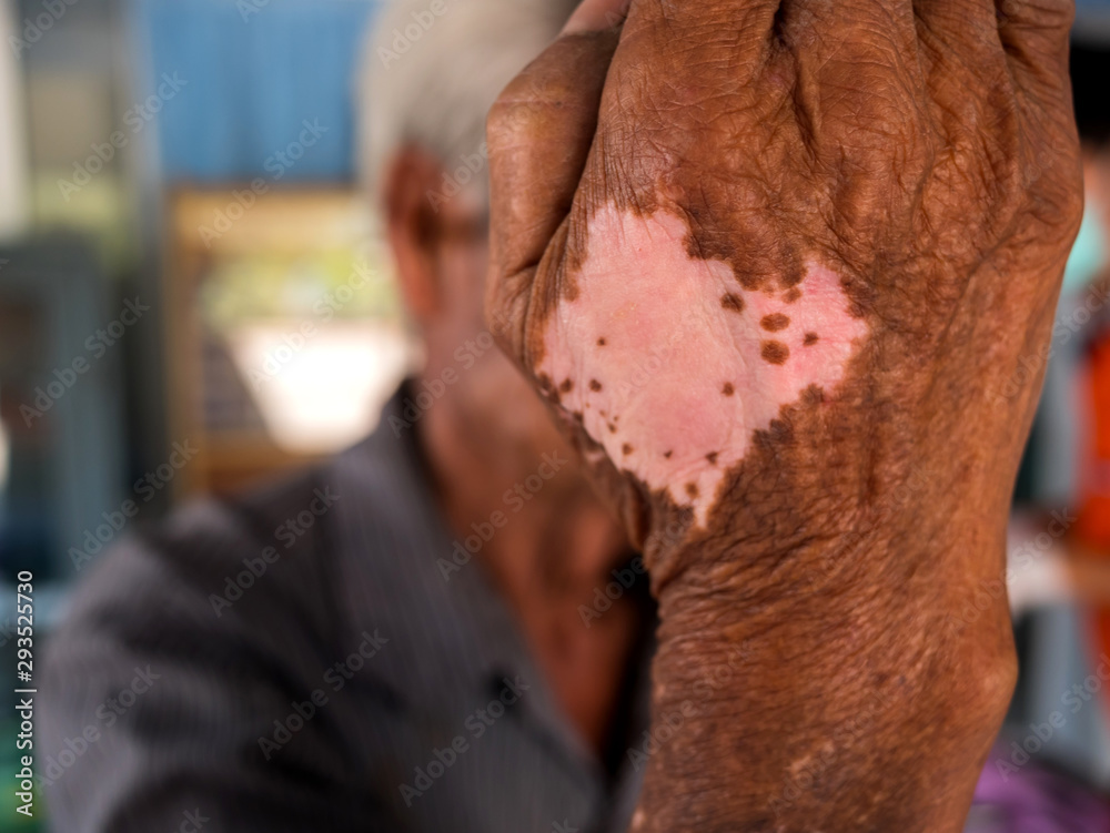 Fototapete White spotted skin disease on arms asian man