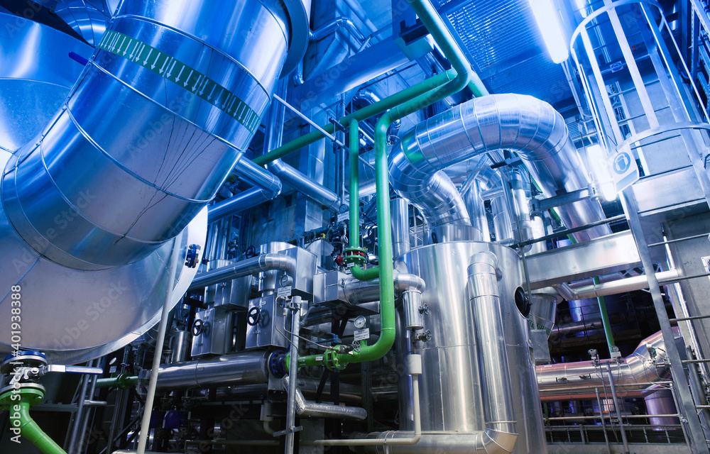 Fototapete Industrial zone, Steel pipelines, valves and cables