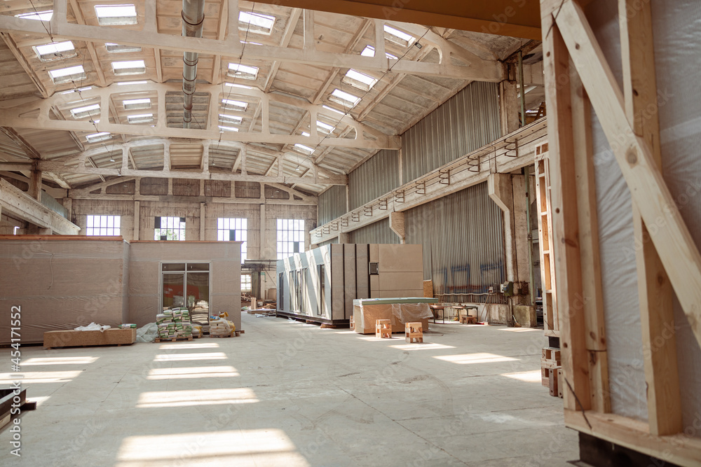 Fototapete Building under construction with prefabricated container houses