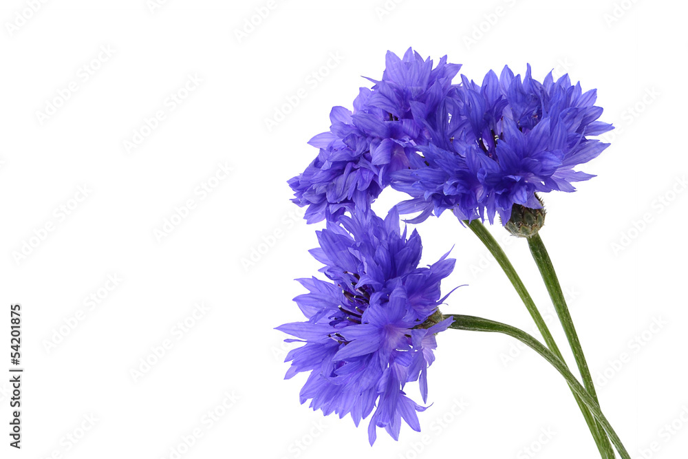 Fototapete Blue cornflower closeup on white