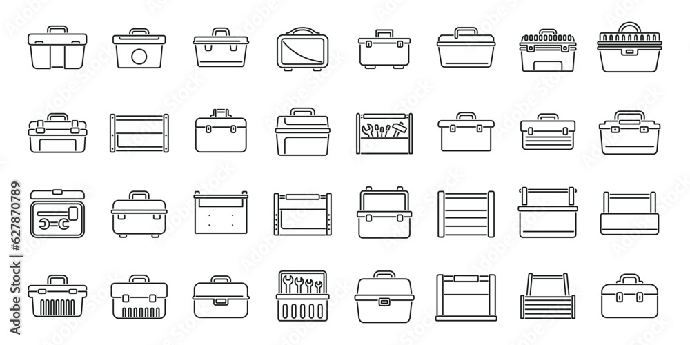 Fototapete Toolbox icons set outline vector. Repair kit. Wooden safety