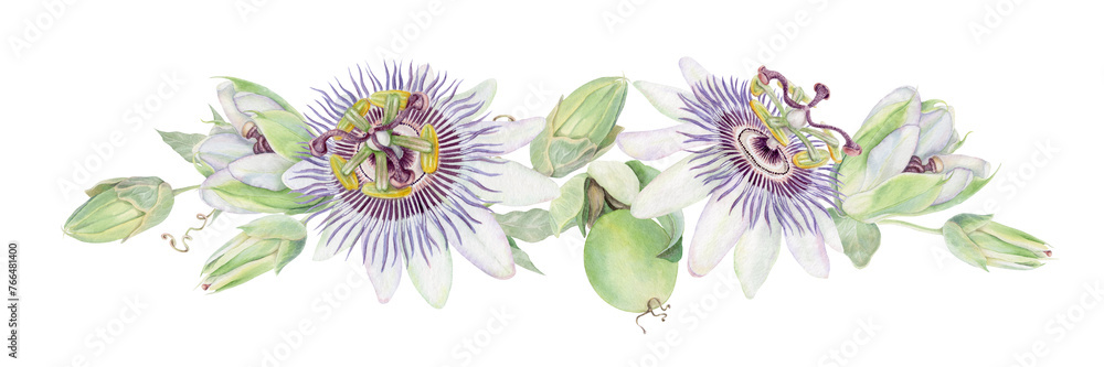 Fototapete Passion flower hand painted watercolor isolated floral illustration