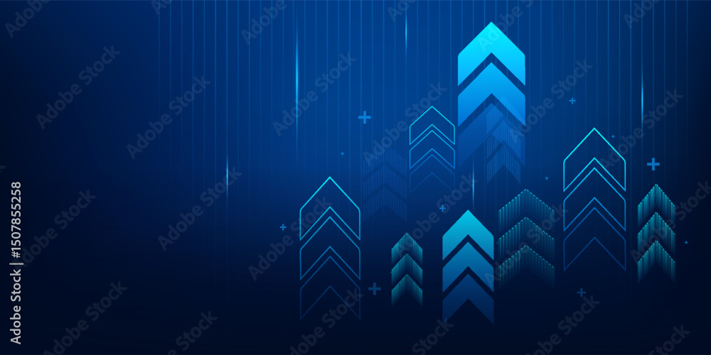 Bild auf Leinwand business arrow up growth technology on grid line dark blue background