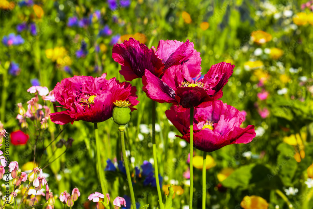 Bild auf Leinwand vibrant pink poppies in bloom, nature background