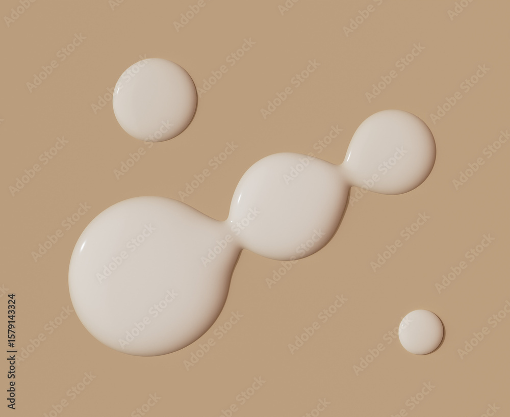 Bild auf Leinwand Creamy toner cosmetic liquid white texture puddle dripping across beige background