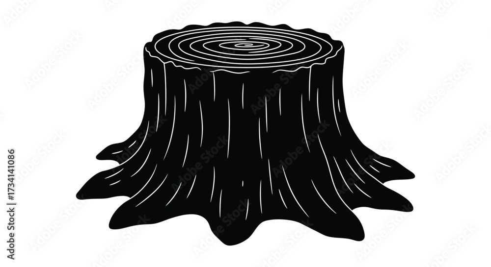 Bild auf Leinwand A dark detailed illustration of a freshly cut tree stump silhouette