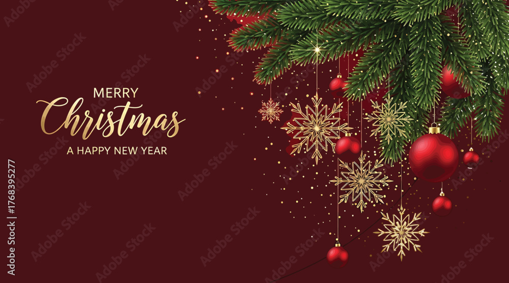Bild auf Leinwand Elegant christmas background featuring a rich maroon backdrop, adorned with lush