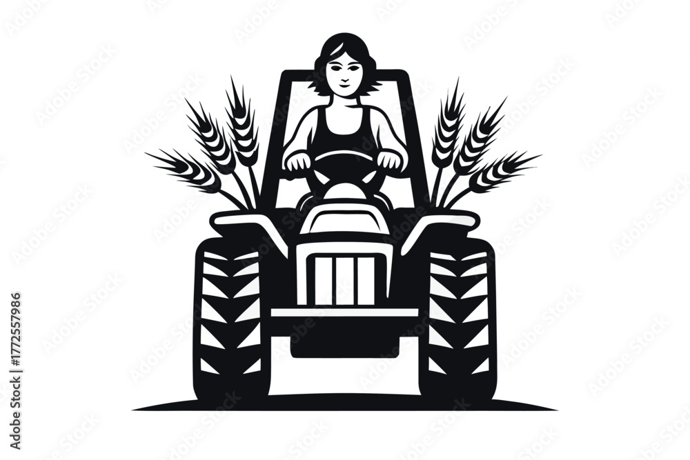 Bild auf Leinwand Female farmer operates a tractor amid wheat stalks, creating a powerful agricult