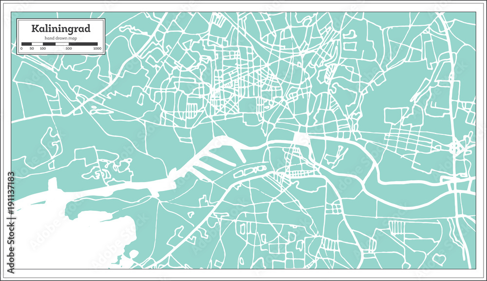 Bild auf Leinwand Kaliningrad Russia City Map in Retro Style. Outline Map.