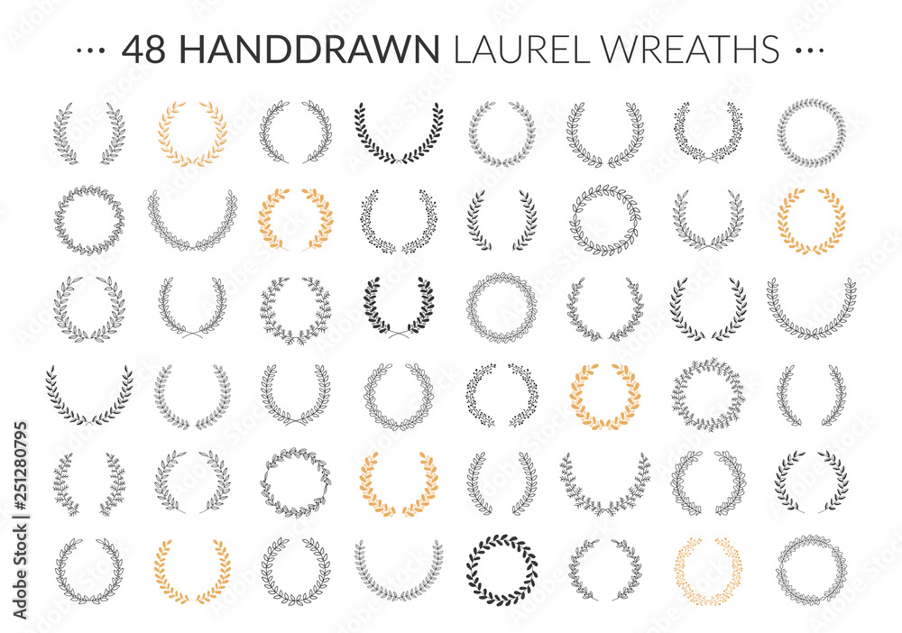 Bild auf Leinwand Hand Drawn Laurel Wreaths