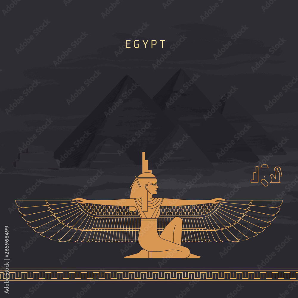 Bild auf Leinwand Vector illustration Egyptian fertility goddess Isis isolated on hand-drawn backg