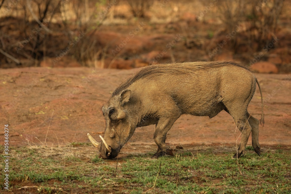 Bild auf Leinwand The common warthog (Phacochoerus africanus) going to the waterhole