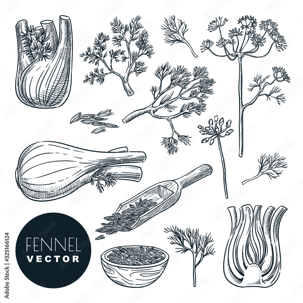 Bild auf Leinwand Fennel plant root, leaves and seeds