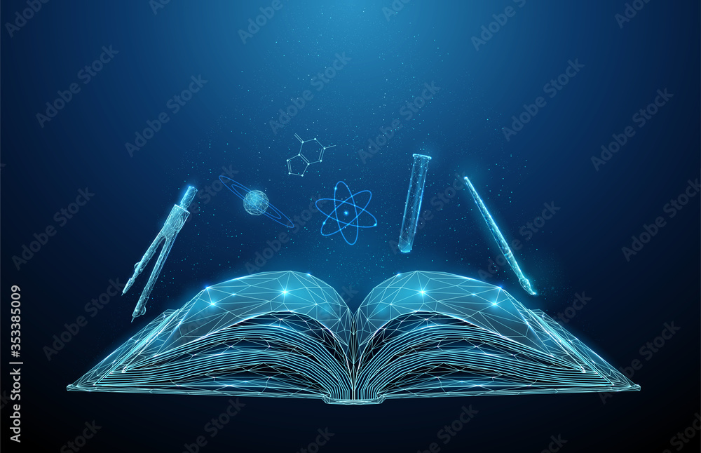 Bild auf Leinwand Abstract open schoolbook with icons of school subjects