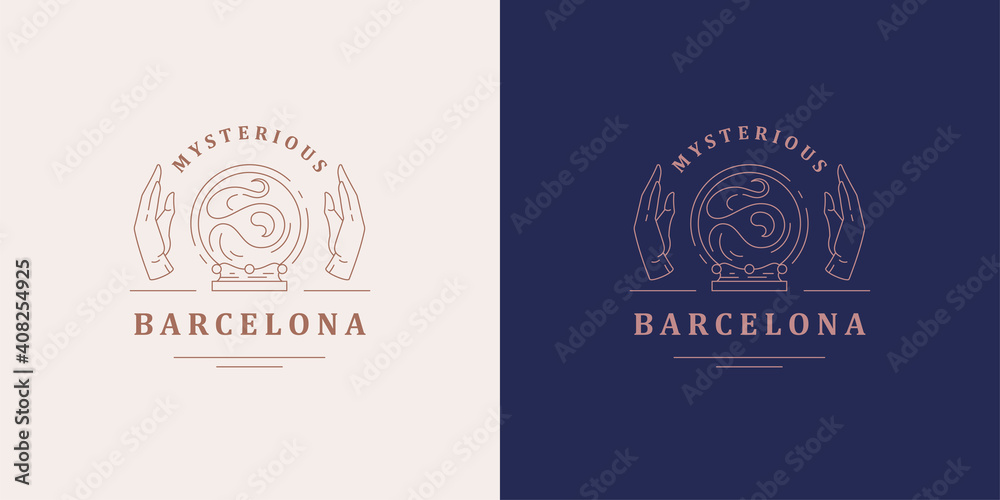 Bild auf Leinwand Hands of fortune teller and crystal ball logo template silhouette linear vector