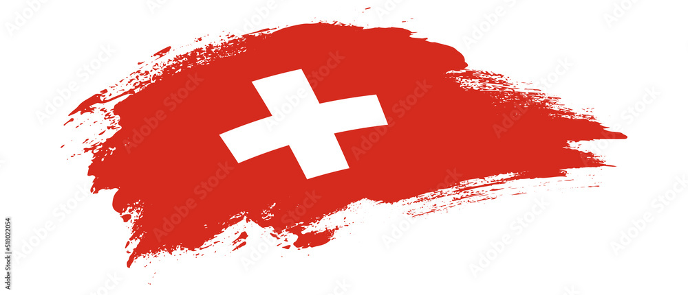Bild auf Leinwand National flag of Switzerland with curve stain brush stroke effect on white backg