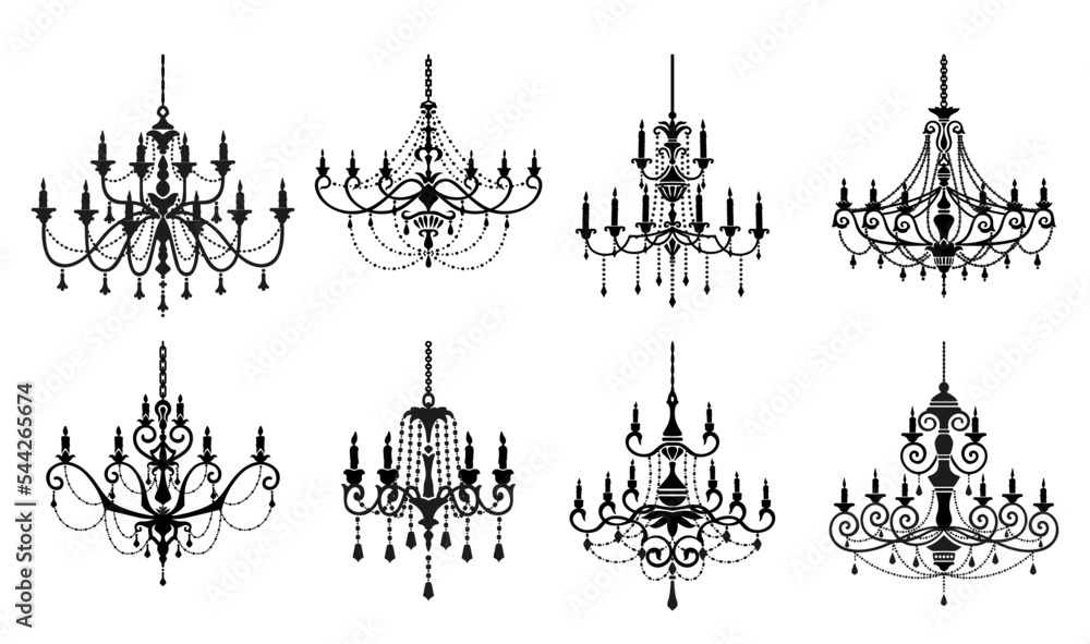 Bild auf Leinwand Chandelier silhouettes, home vintage illumination and light equipment