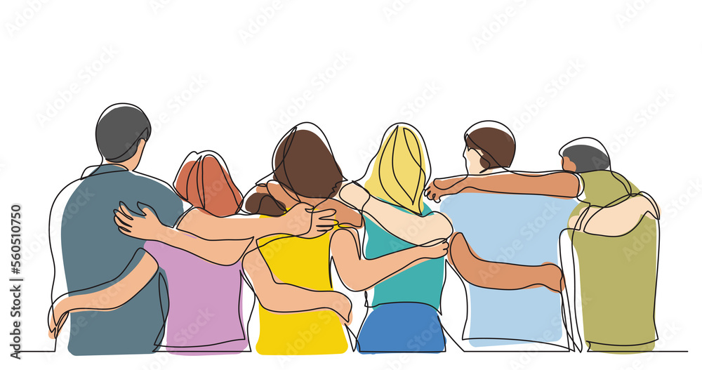 Bild auf Leinwand group of men and women standing together showing their friendship colored - PNG