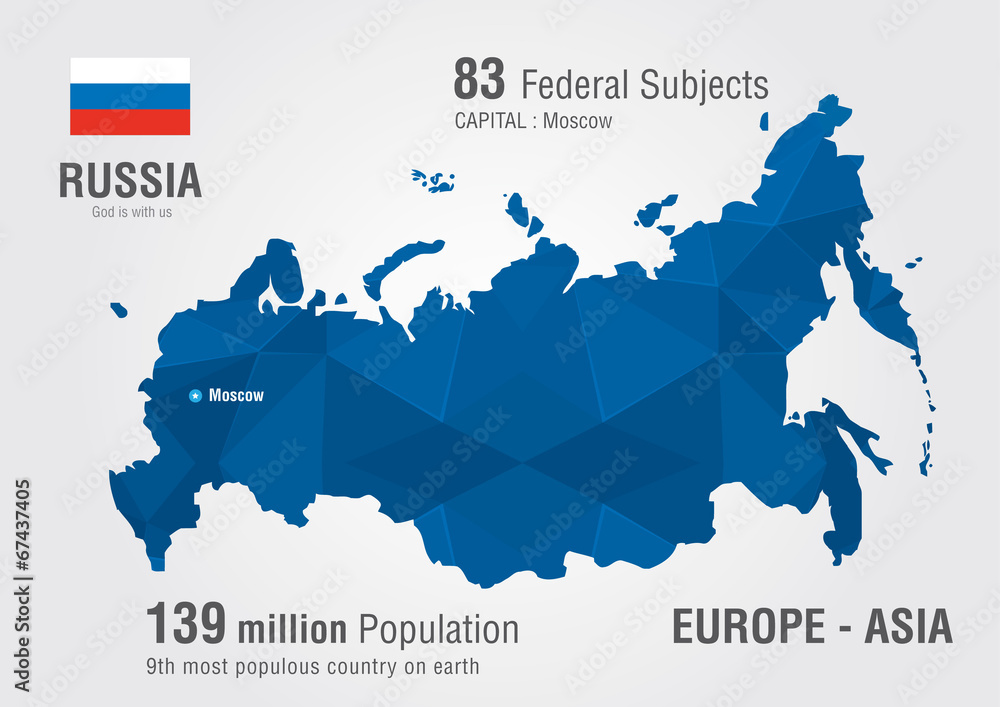 Bild auf Leinwand Russia world map with a pixel diamond pattern.