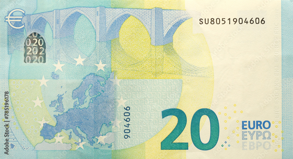 Bild auf Leinwand Fragment of one twenty euro money bill
