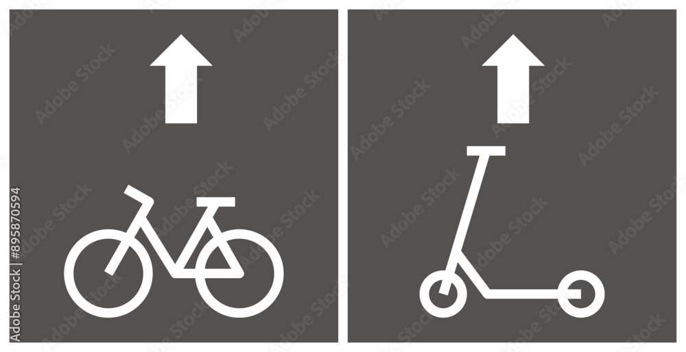 Bild auf Leinwand Bicycle and scooter lane icon, road marking set