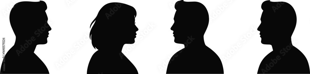 Foto Male and female profile silhouettes, side view heads, black shadow faces, vector