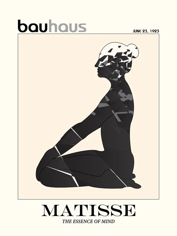 Matisse woman figure with Bauhaus geometric poster, a wonderful mid century modern art print that will brighten up your favorite room. Versa