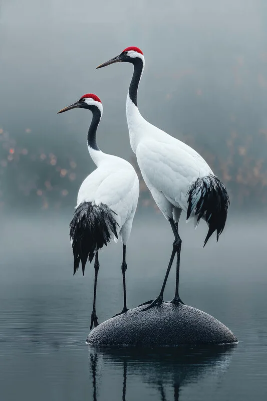 Sticker Plakat Graceful Cranes by the Lake