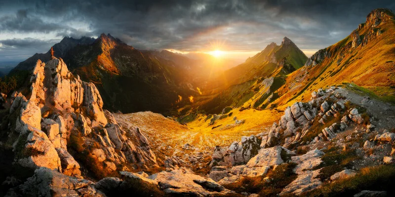 Bild auf Leinwand Late summer sunset on the mountain ridge