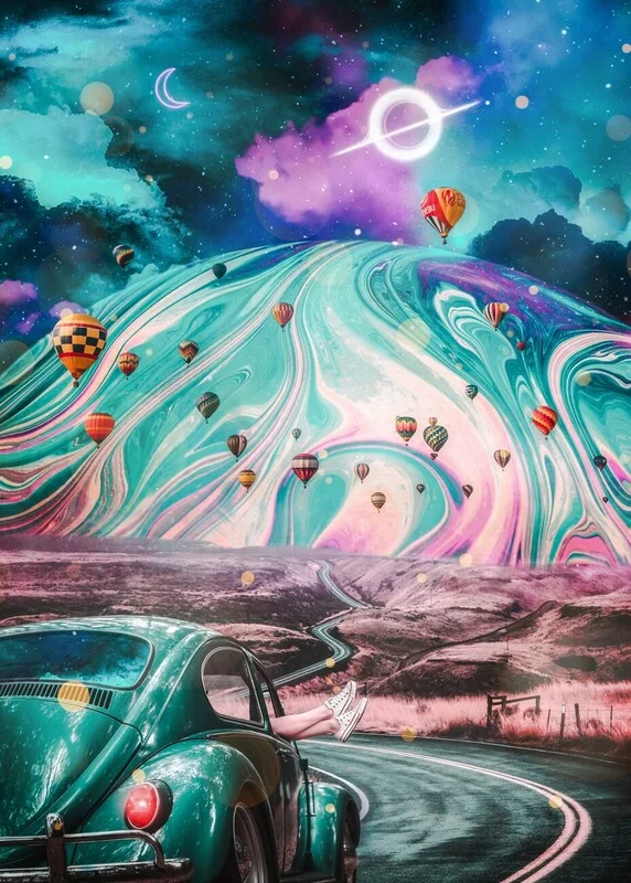 Sticker Plakat Retro Soap Bubble Road Psychedelic Trippy