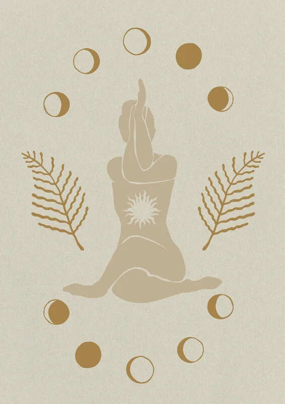 Poster Yoga women Silhouette with Moon Phases
