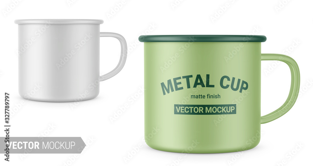 Foto Matte white enamel metal cup. Vector mockup.