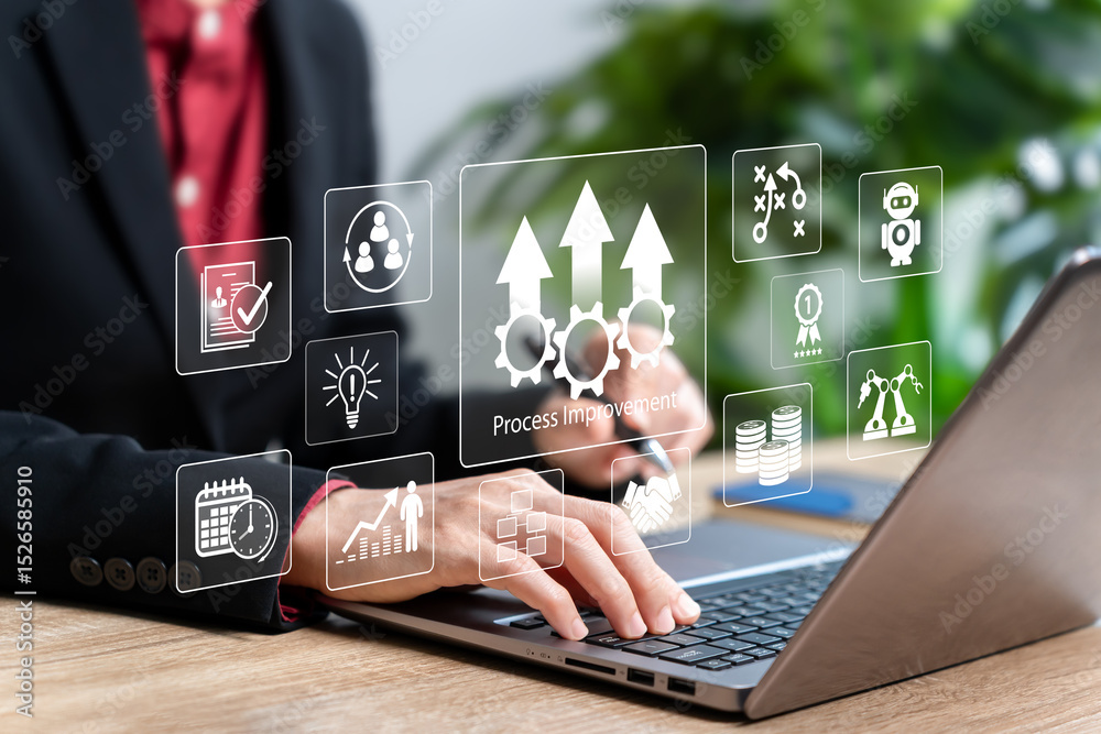 Bild auf Leinwand Process improvement with AI technology concept, Businesswoman creating continuou