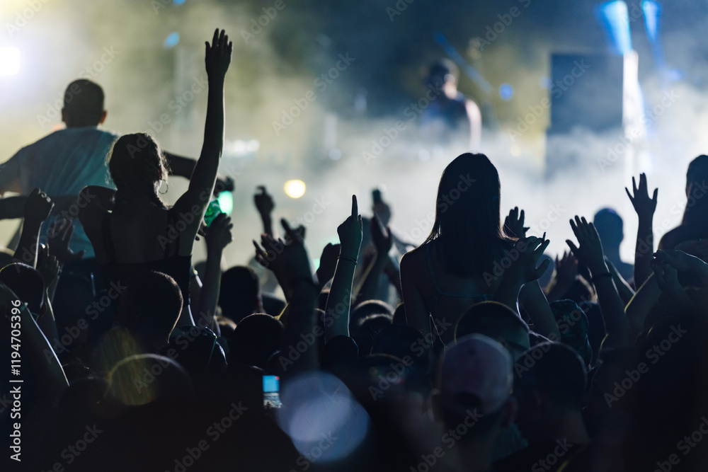 Foto Silhouetted crowd enjoying concert under colorful lights