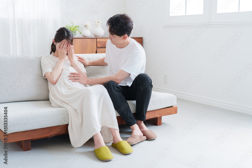 Sticker Plakat マタニティブルーの妊婦の妻を励ます夫