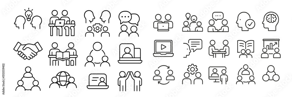 Sticker Plakat Simplified icons showcasing teamwork, communication, and collaboration for profe