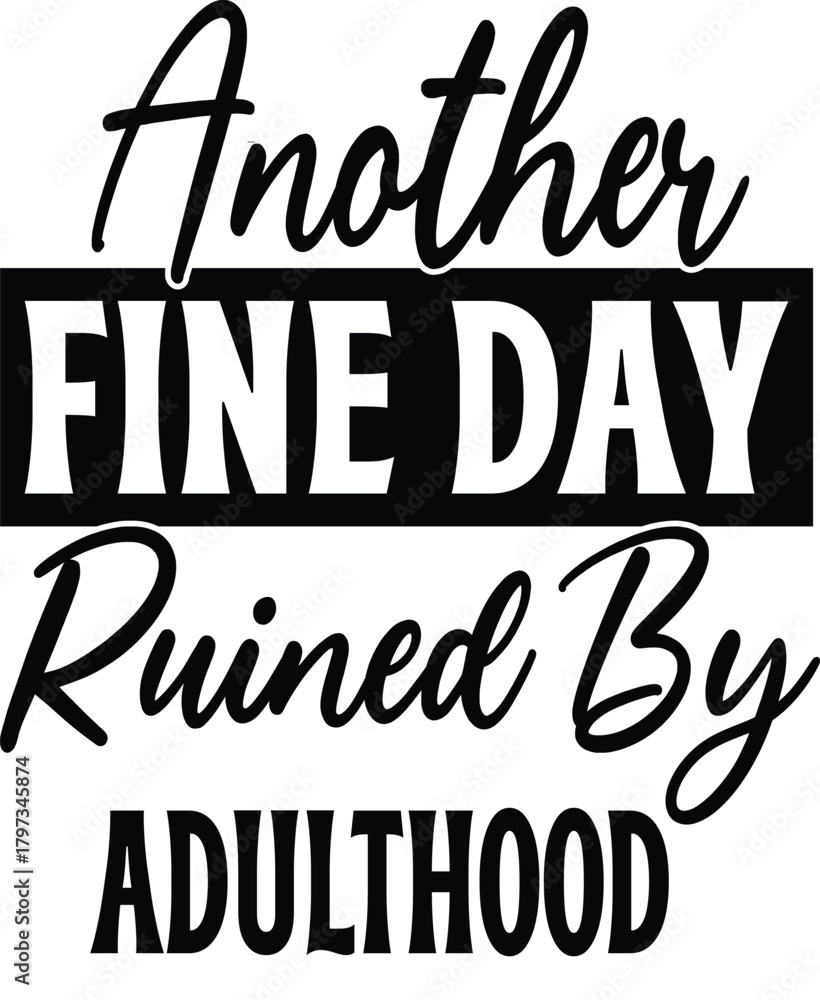 Sticker Plakat Humorous text graphic: Another FINE DAY Ruined By ADULTHOOD